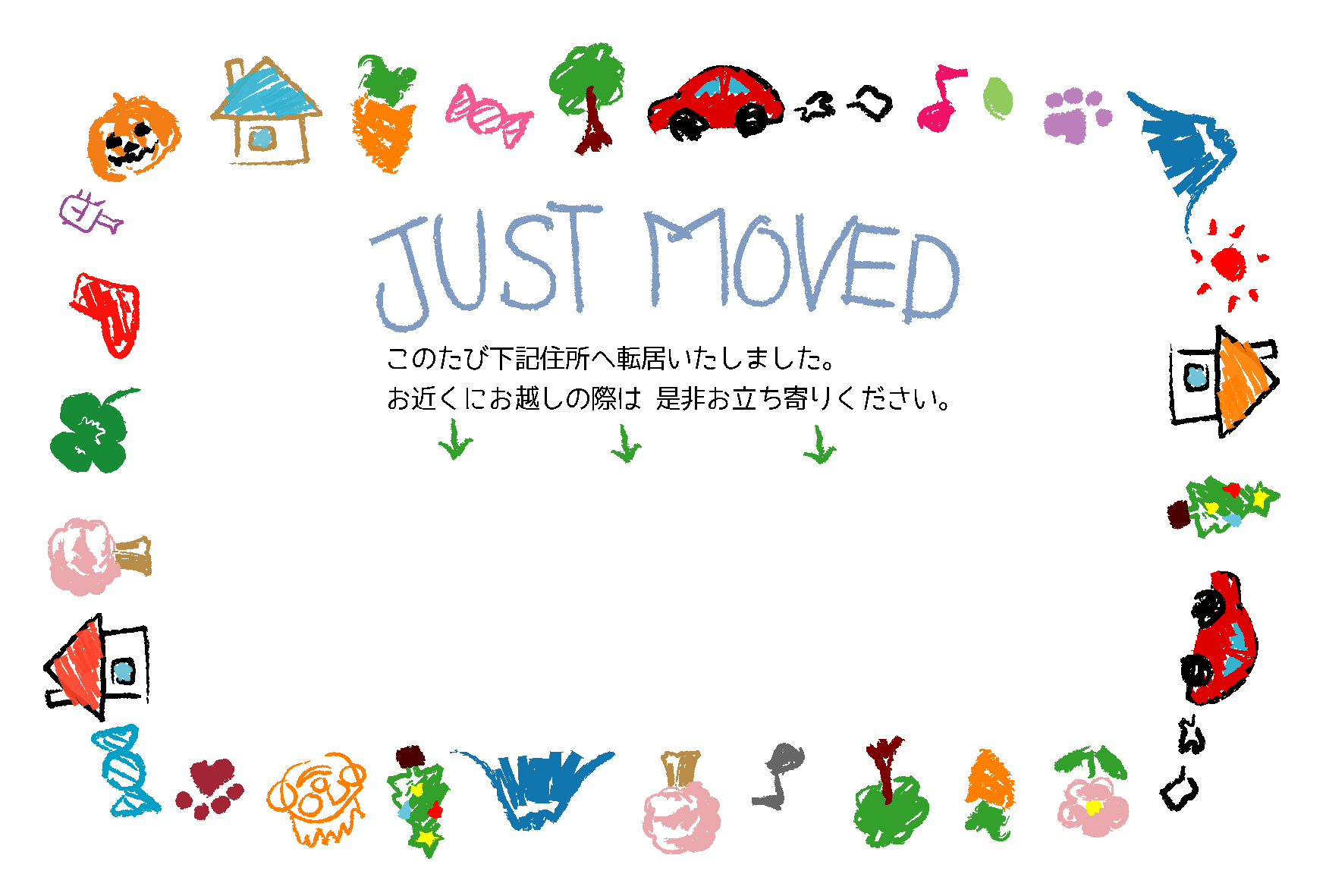 転居・引越し報告はがきテンプレート「らくがき」ダウンロード