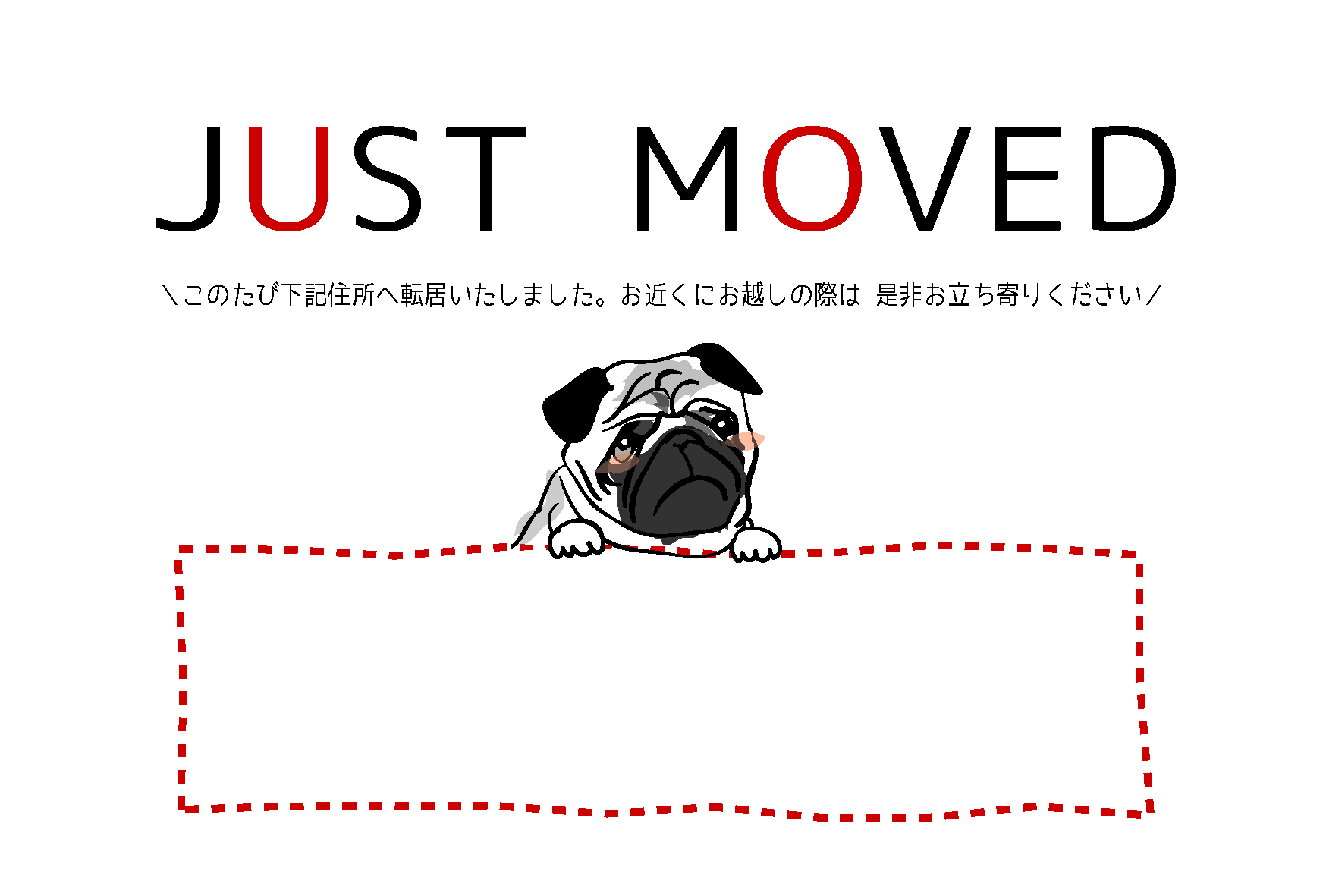 転居・引越し報告はがきテンプレート「パグ3」ダウンロード