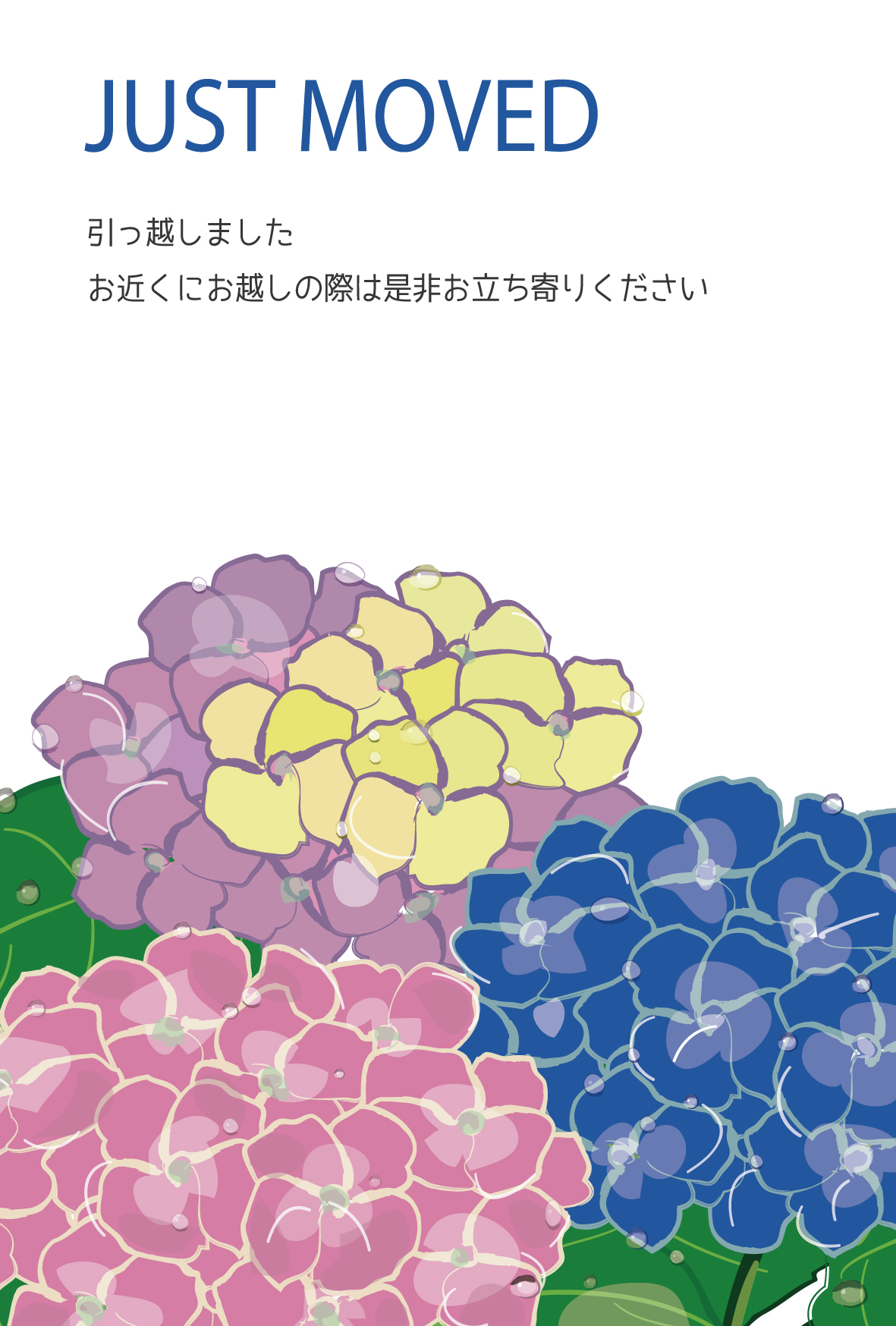 紫陽花のイラストの引越しはがき。あいたスペースに新住所やメッセージを