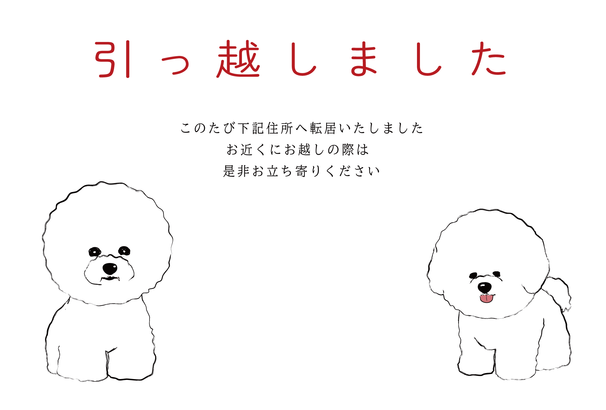 転居・引越し報告はがきテンプレート「仲良しビションフリーゼ」ダウンロード