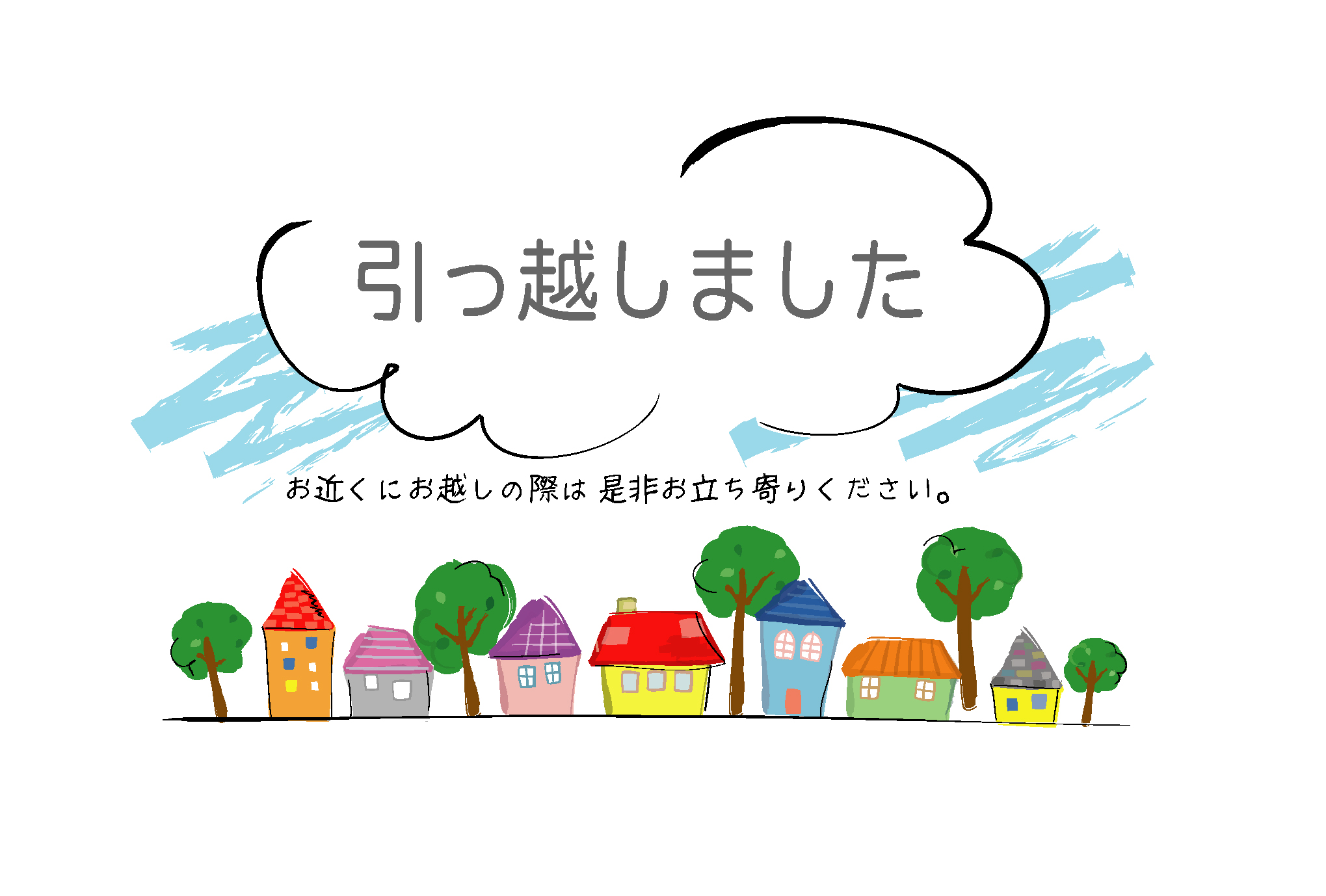 転居・引越し報告はがきテンプレート「家並み」ダウンロード
