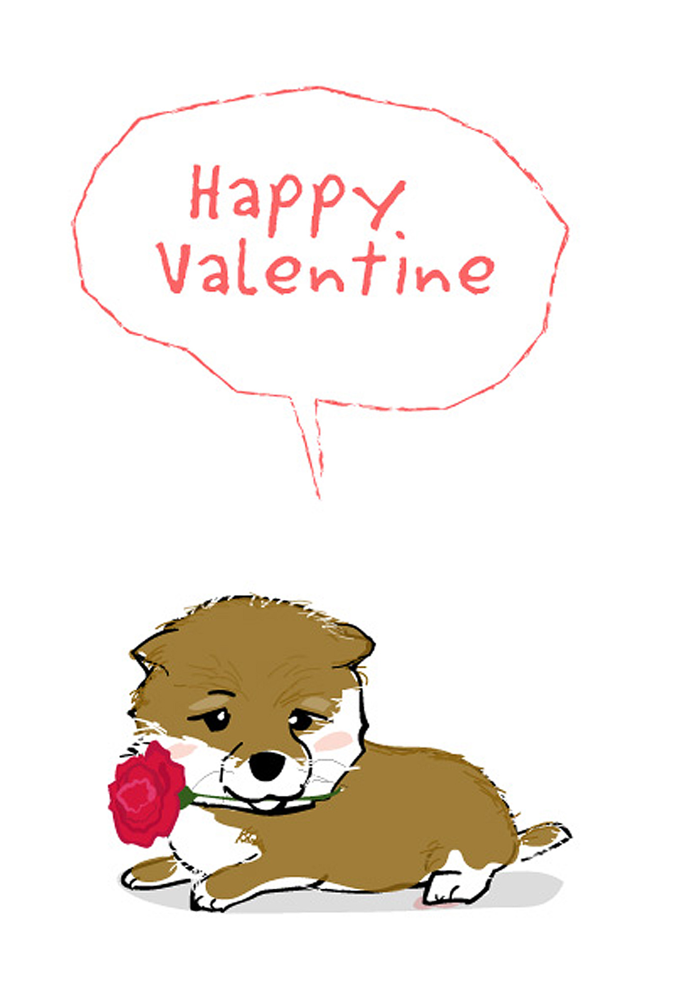 バラをくわえたわんこのバレンタインカードテンプレートです