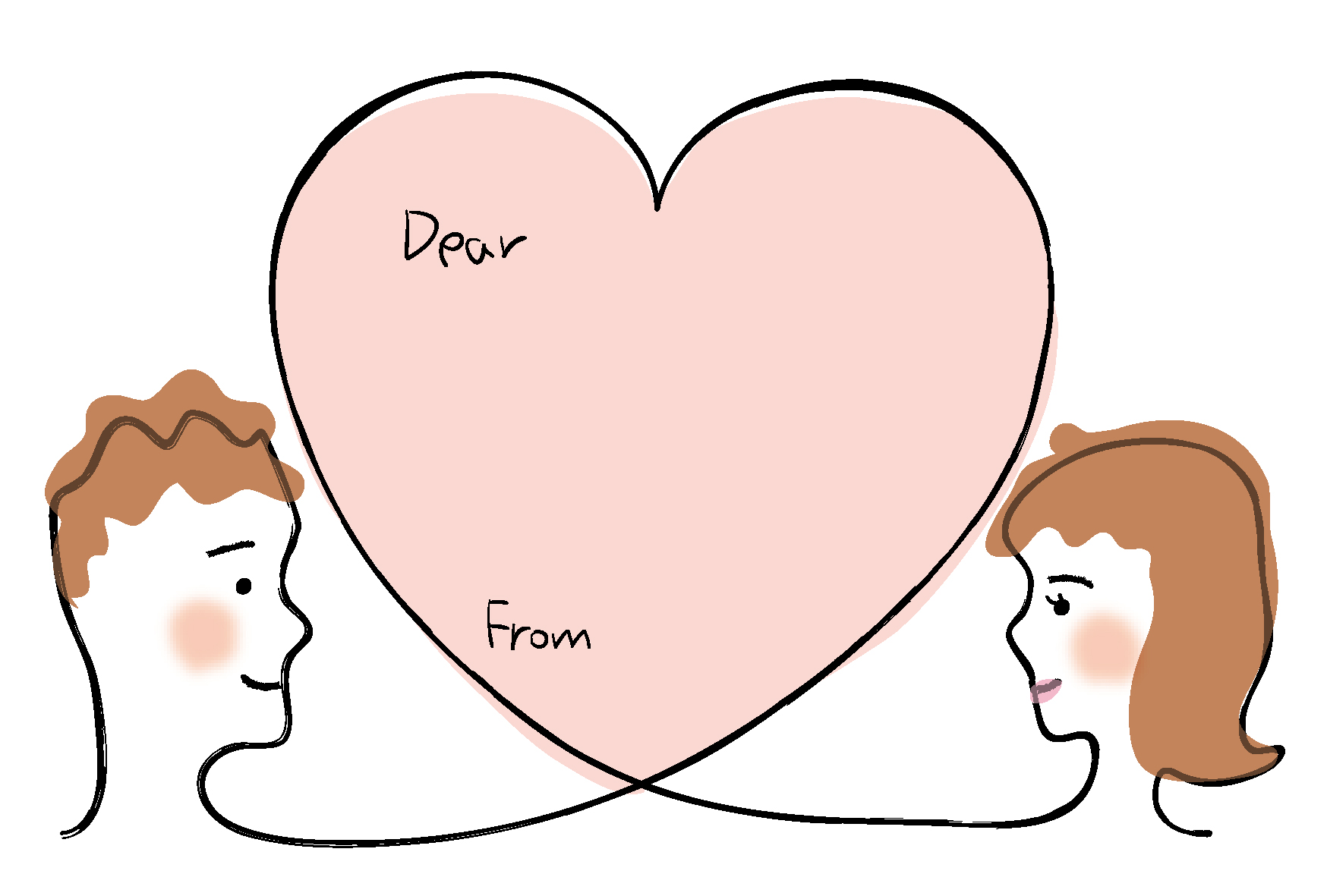 バレンタインのポストカードテンプレート「ハートの手紙」ダウンロード