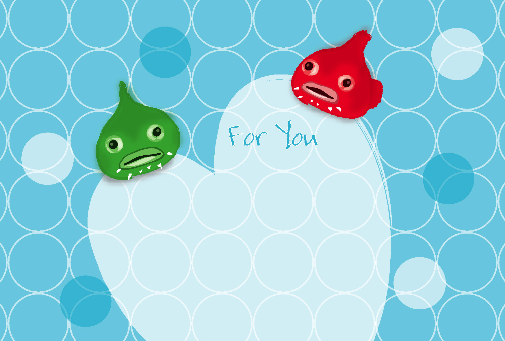 バレンタイン・ホワイトデーのポストカードテンプレート「ダンゴウオ」ダウンロード