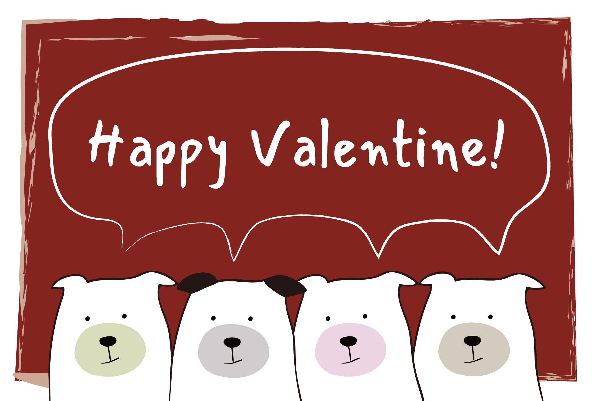 バレンタインのポストカードテンプレート「仲良しわんこ」ダウンロード