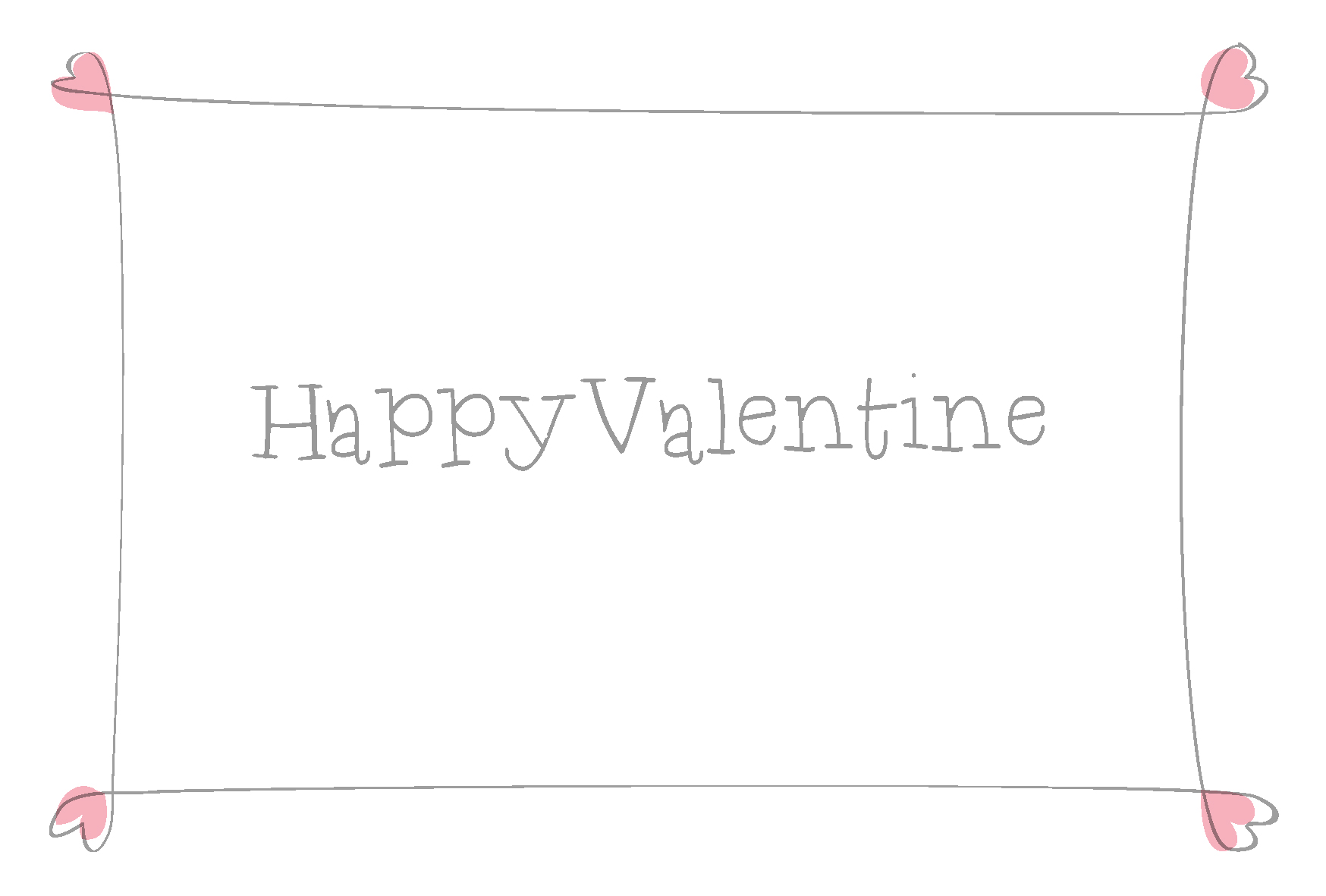 バレンタインのポストカードテンプレート「ハートの飾り枠」ダウンロード