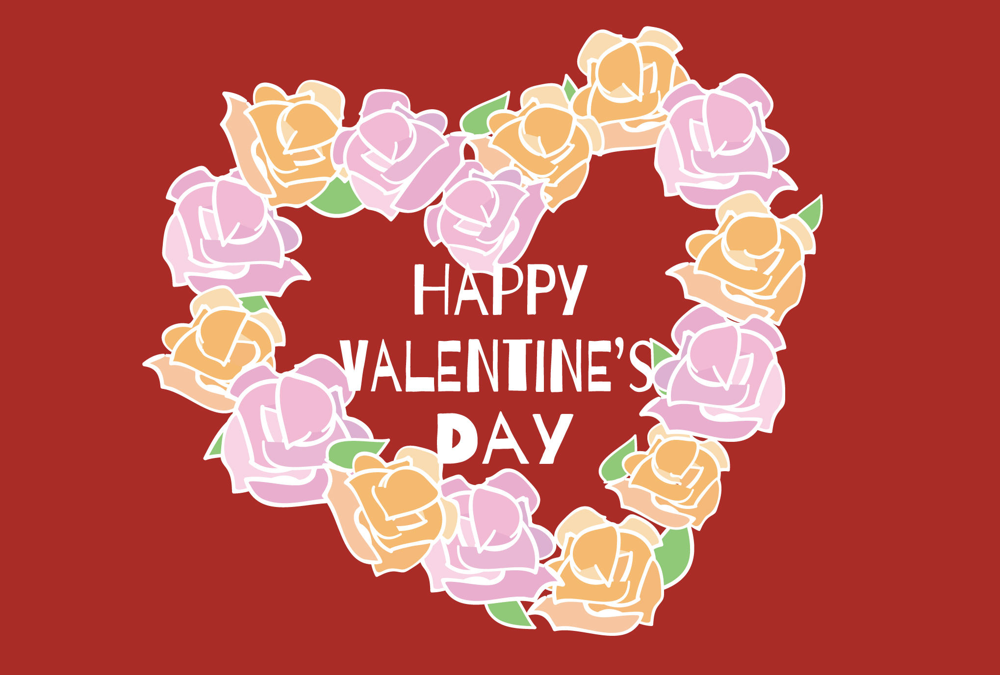 バレンタインのポストカードテンプレート「ハート型のバラ」ダウンロード