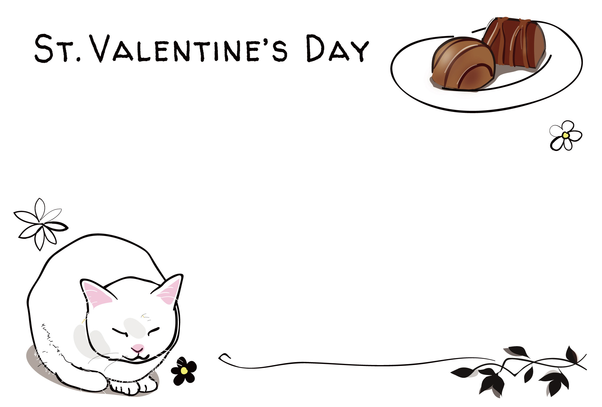バレンタインのポストカードテンプレート「猫とチョコレート」ダウンロード
