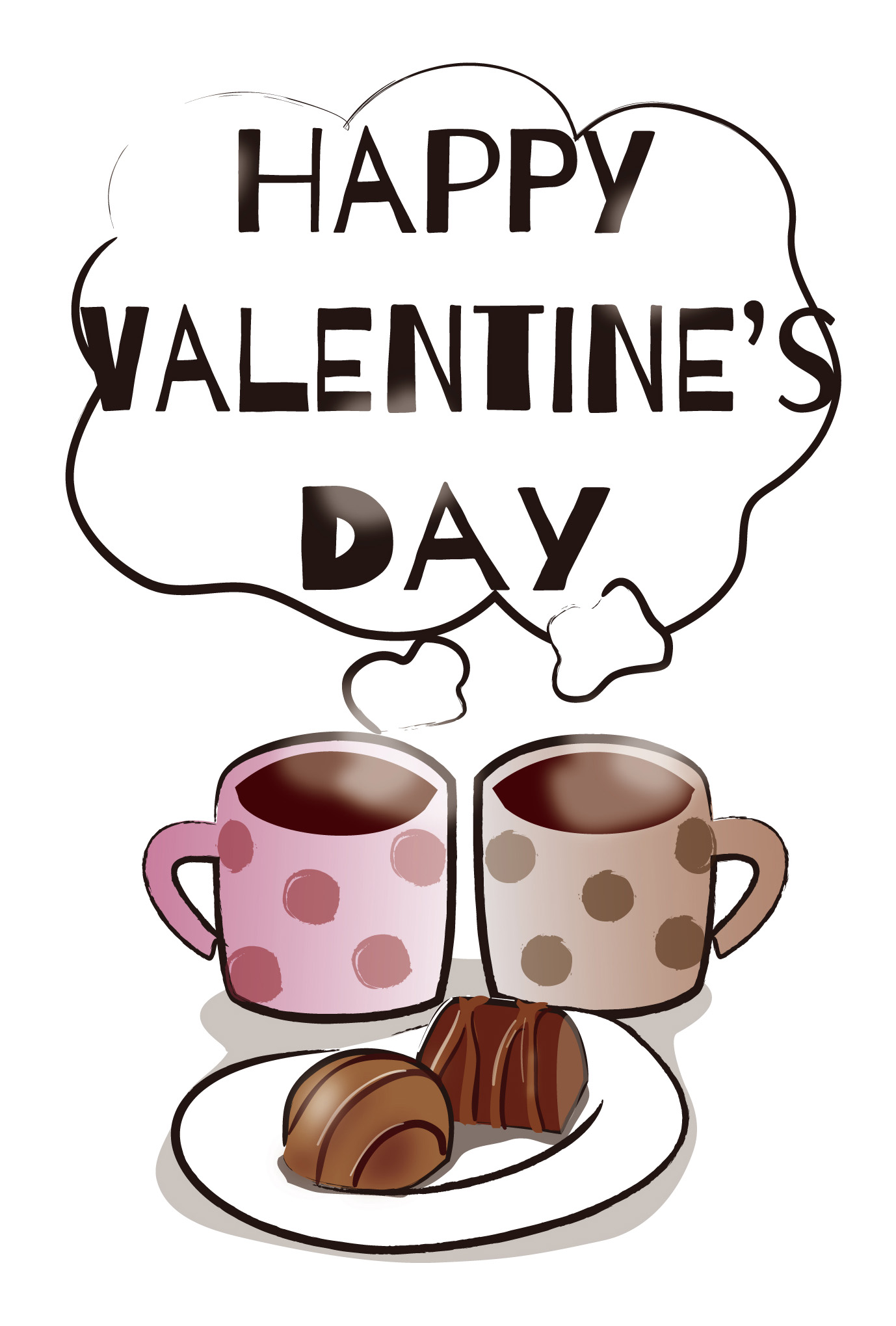ほっこりかわいいペアマグとチョコレートのイラストのバレンタインカード