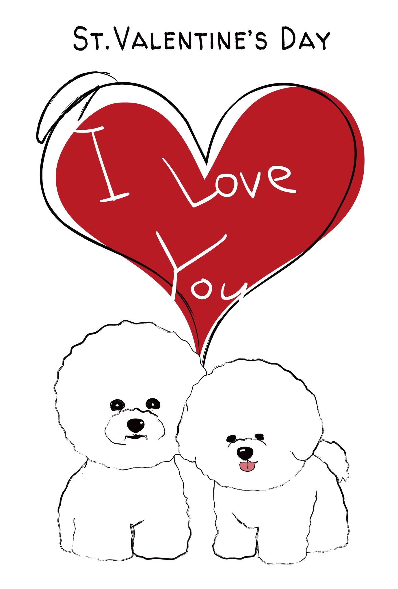 バレンタインポストカードテンプレート「仲良しビションフリーゼ」ダウンロード