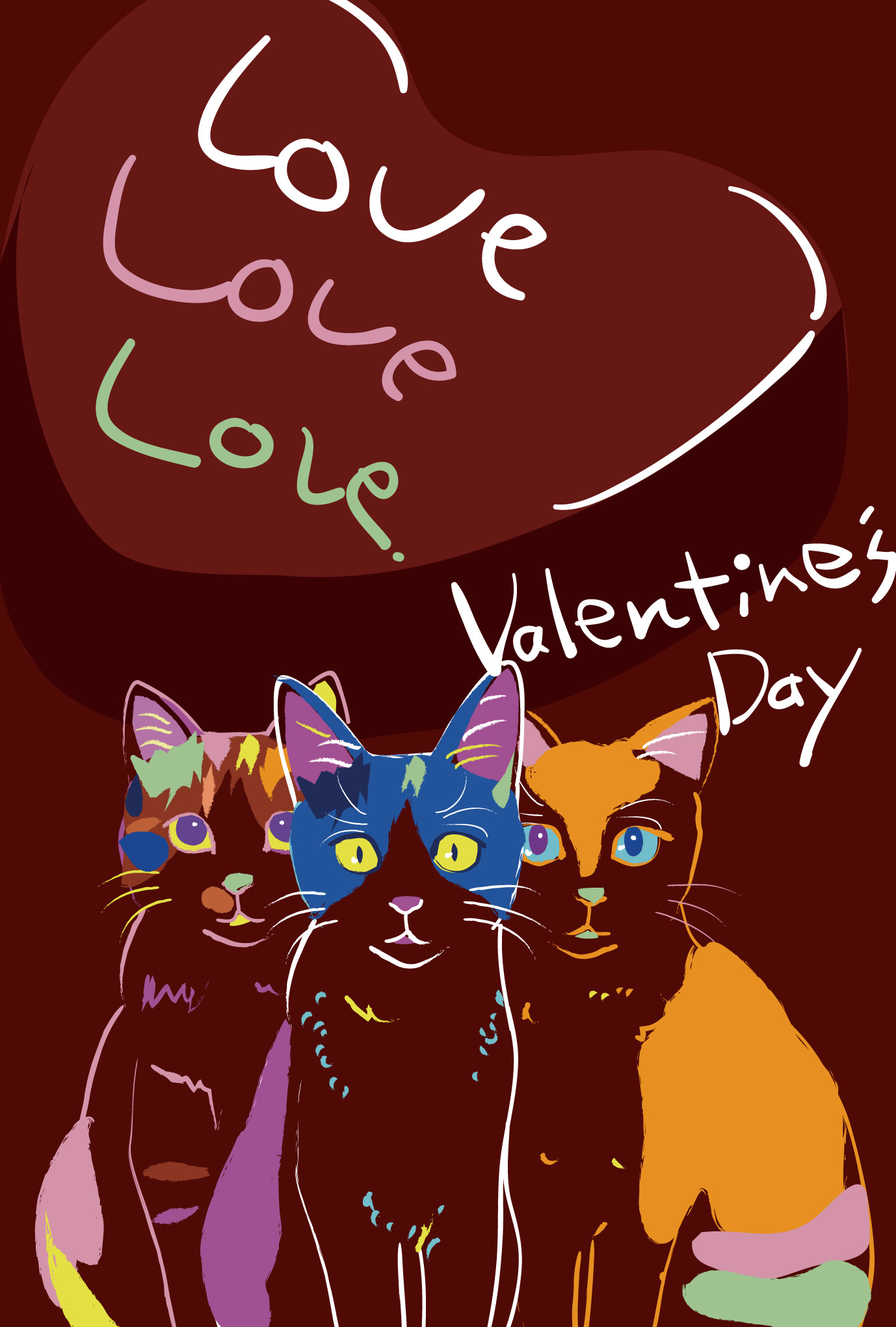 ![]() バレンタイン・3匹の美人猫とハート JPG791KB |