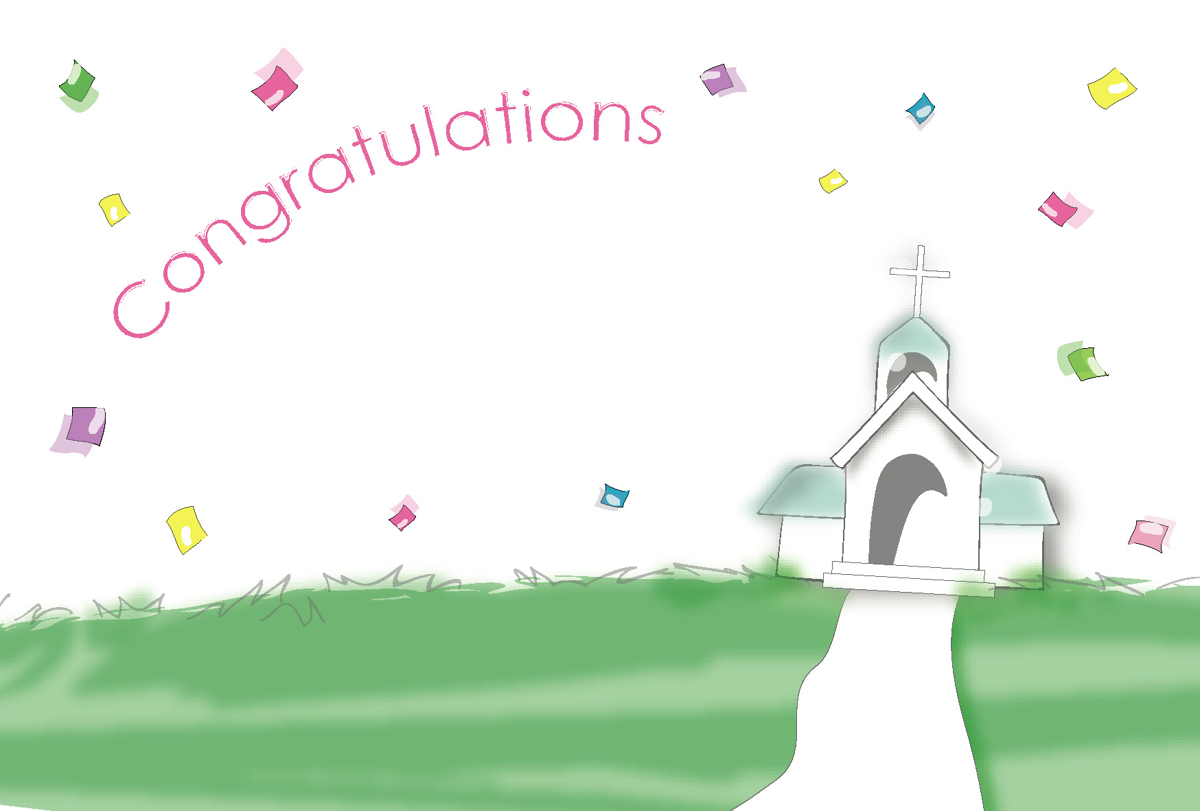 かわいいチャペルのイラストの結婚祝いはがきテンプレートです