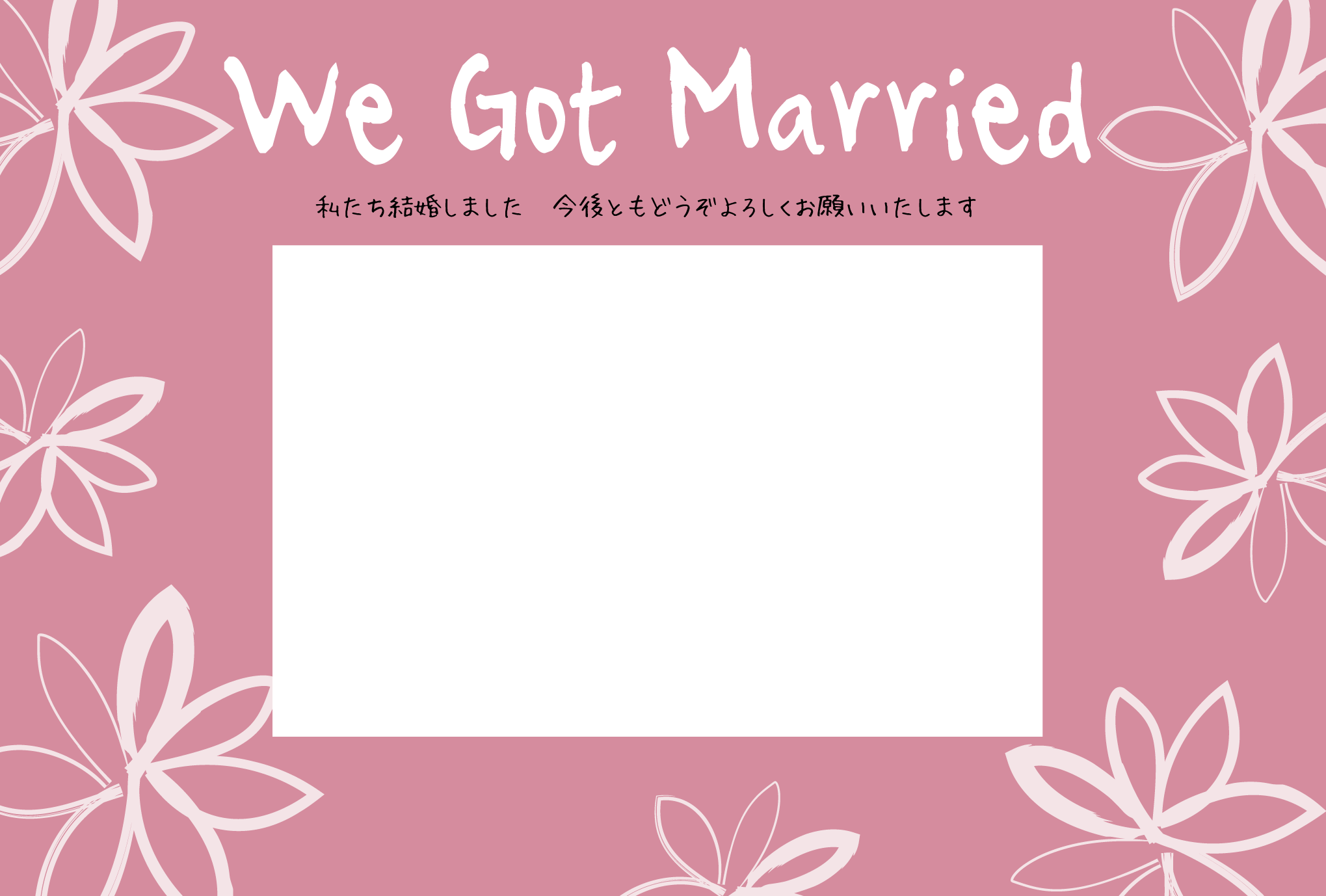 結婚報告はがきテンプレート「写真フレーム・白い花」ダウンロード