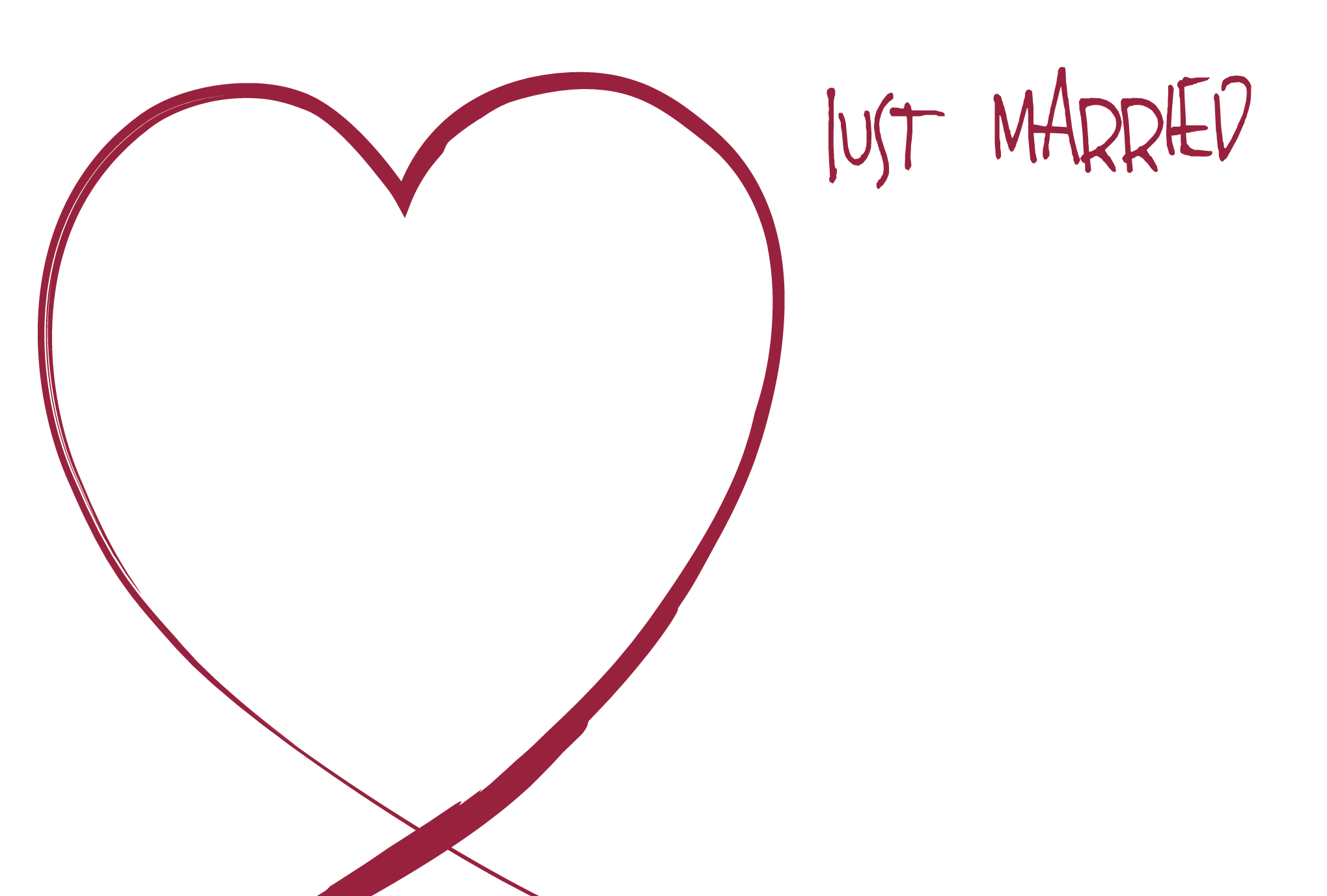 ハート部分に写真を入れることができます。お手持ちの画像の上に重ねてお使いください。シックでシンプルな結婚報告はがきです
