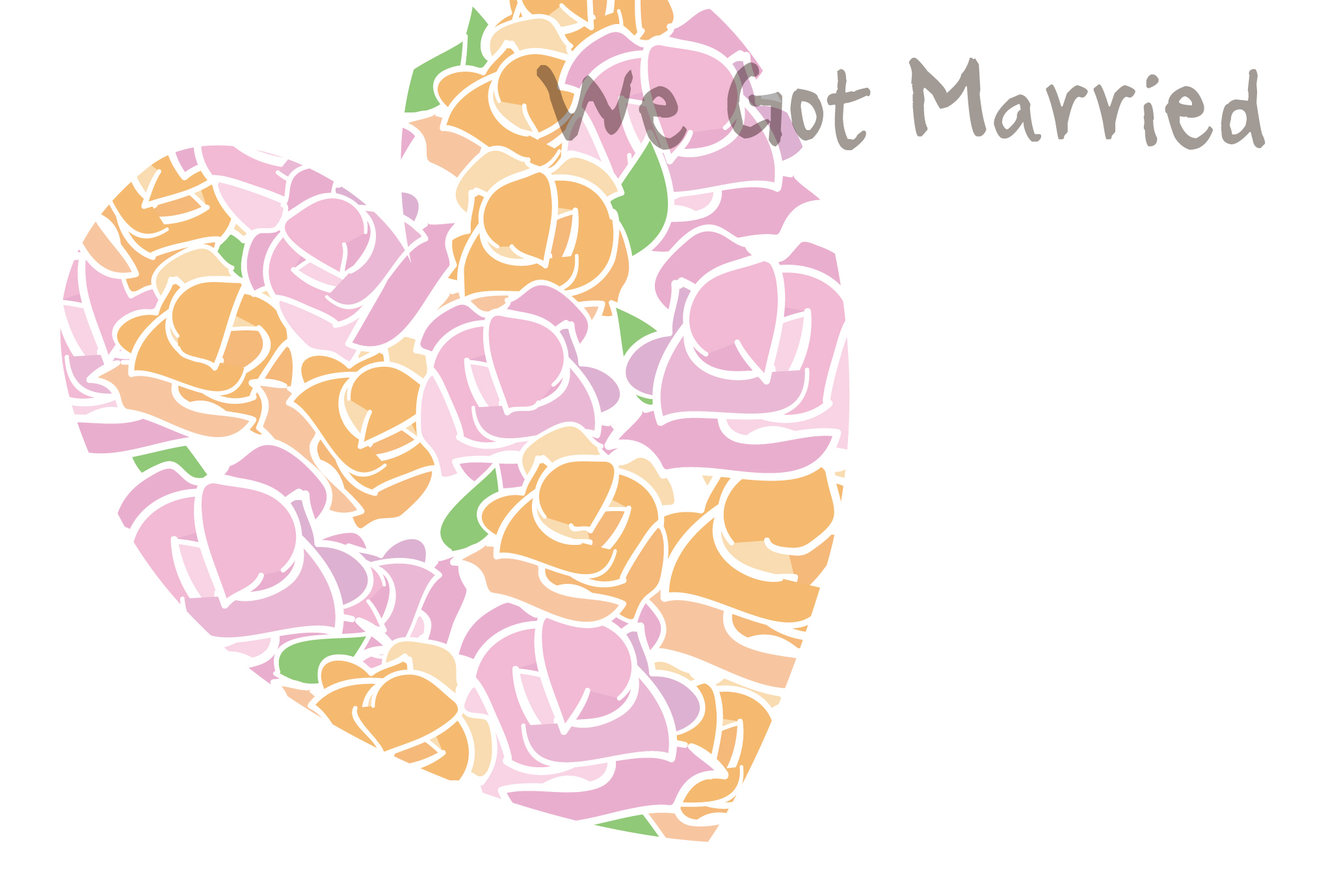 結婚報告はがきテンプレート「ハートの中のバラ1」ダウンロード