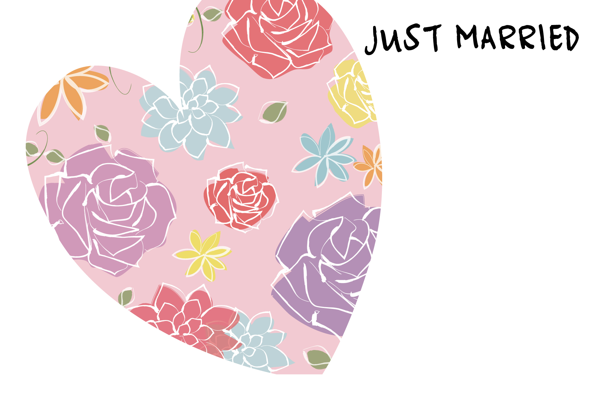 結婚報告はがきテンプレート「ハートの中のバラ2」ダウンロード