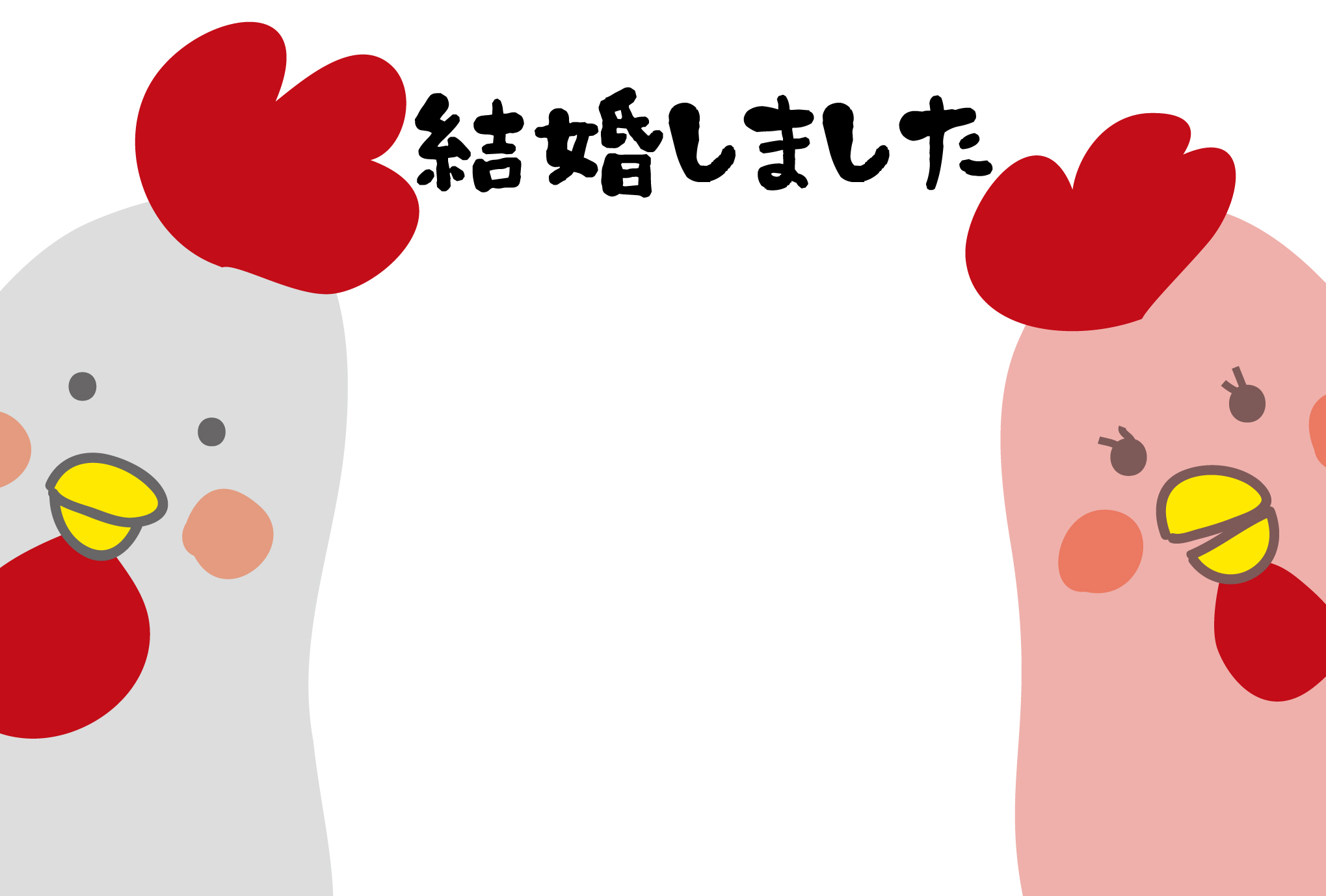 結婚報告はがきテンプレート「にわとりカップル2」ダウンロード