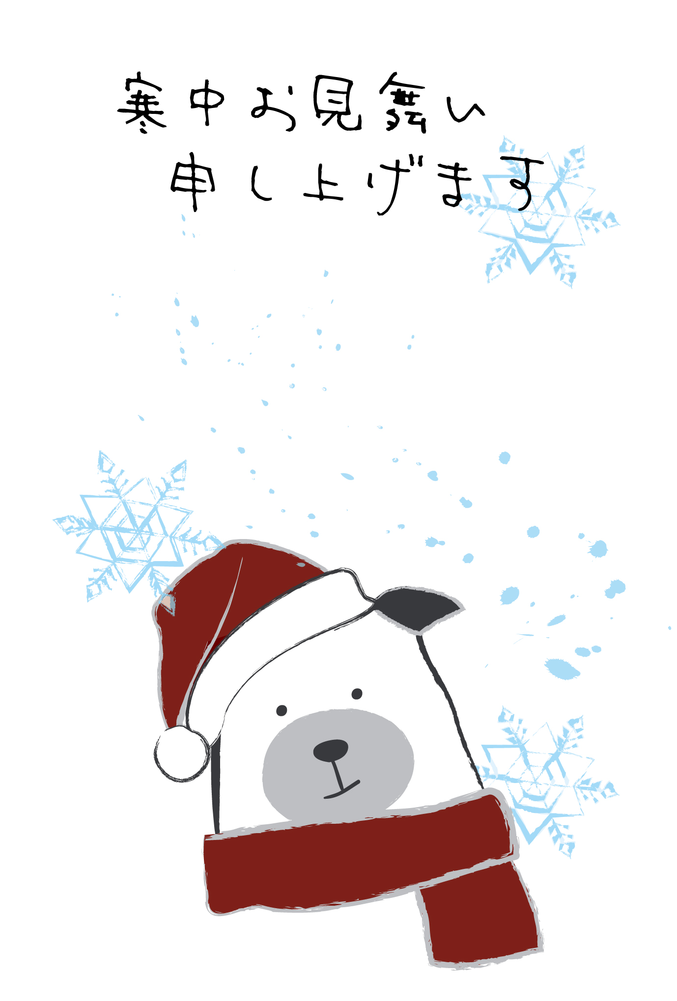 寒中見舞いはがきテンプレート「わんこ」ダウンロード