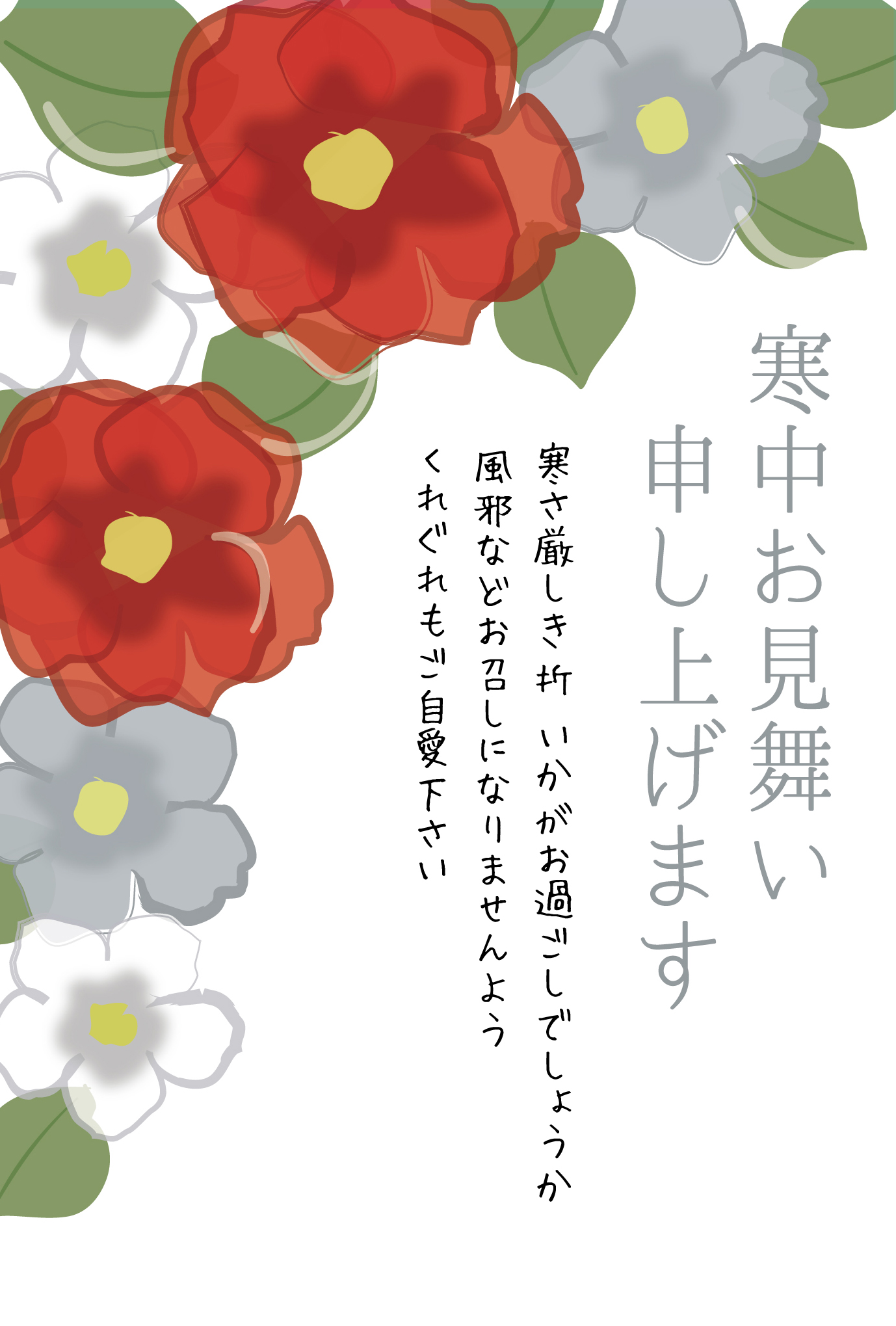 寒中見舞いはがきテンプレート「椿」ダウンロード