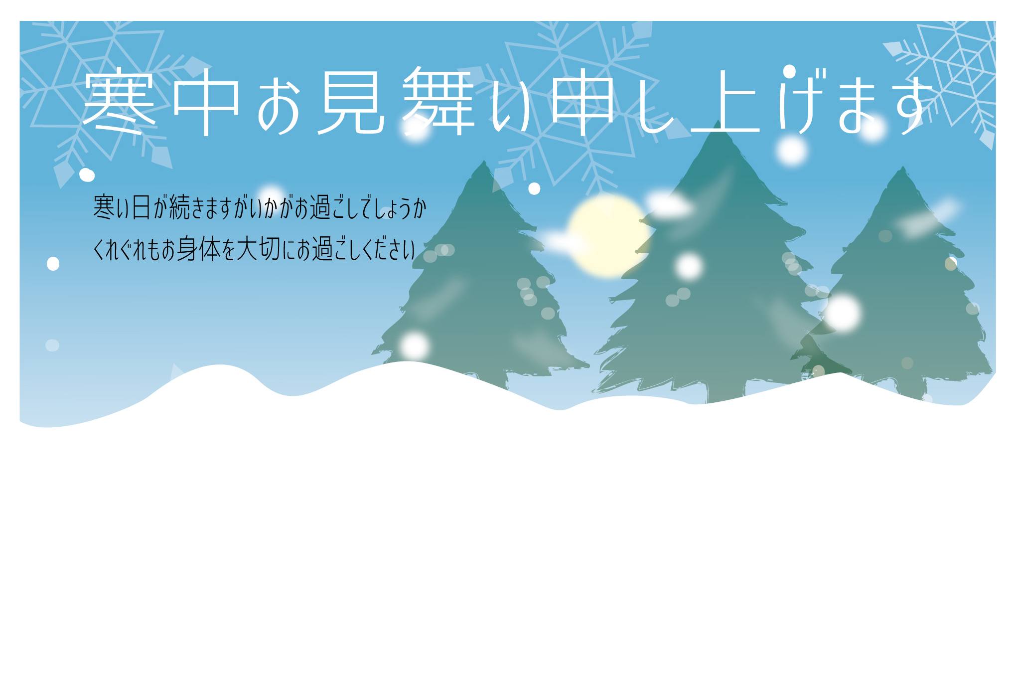 寒中見舞いはがきテンプレート「雪景色2」ダウンロード