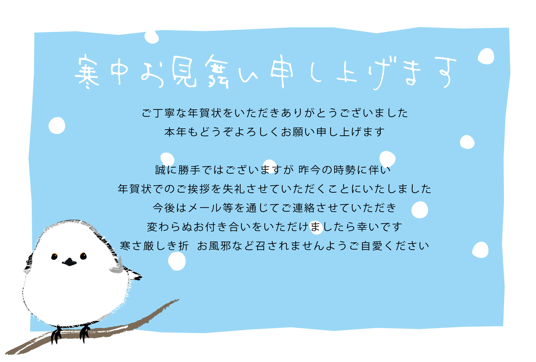 寒中見舞い+年賀状じまいのお知らせはがきテンプレート「シマエナガ」ダウンロード