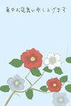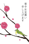 雪だるまや椿など冬のイラストの寒中見舞いはがきテンプレート。